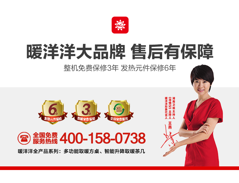 暖洋洋電暖桌·茶幾售后保障:凡購買暖洋洋電暖桌·茶幾,即可整機免費保修3年,發(fā)熱器元件保修6年,大品牌有保障,值得信賴!幸福家庭暖洋洋 有家有愛暖洋洋