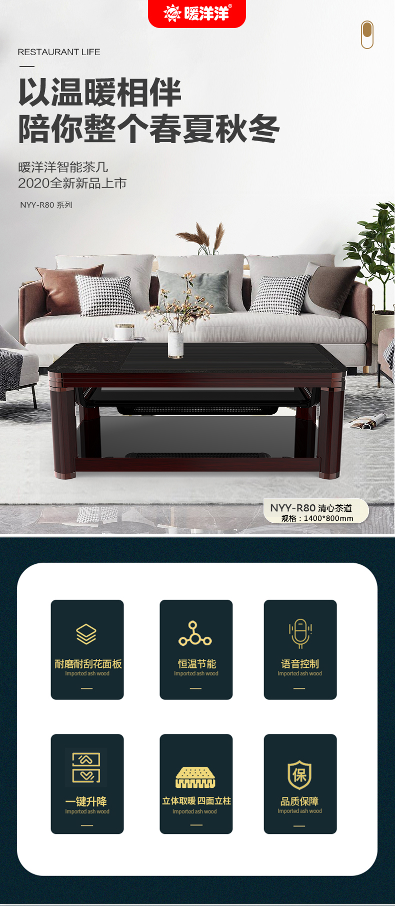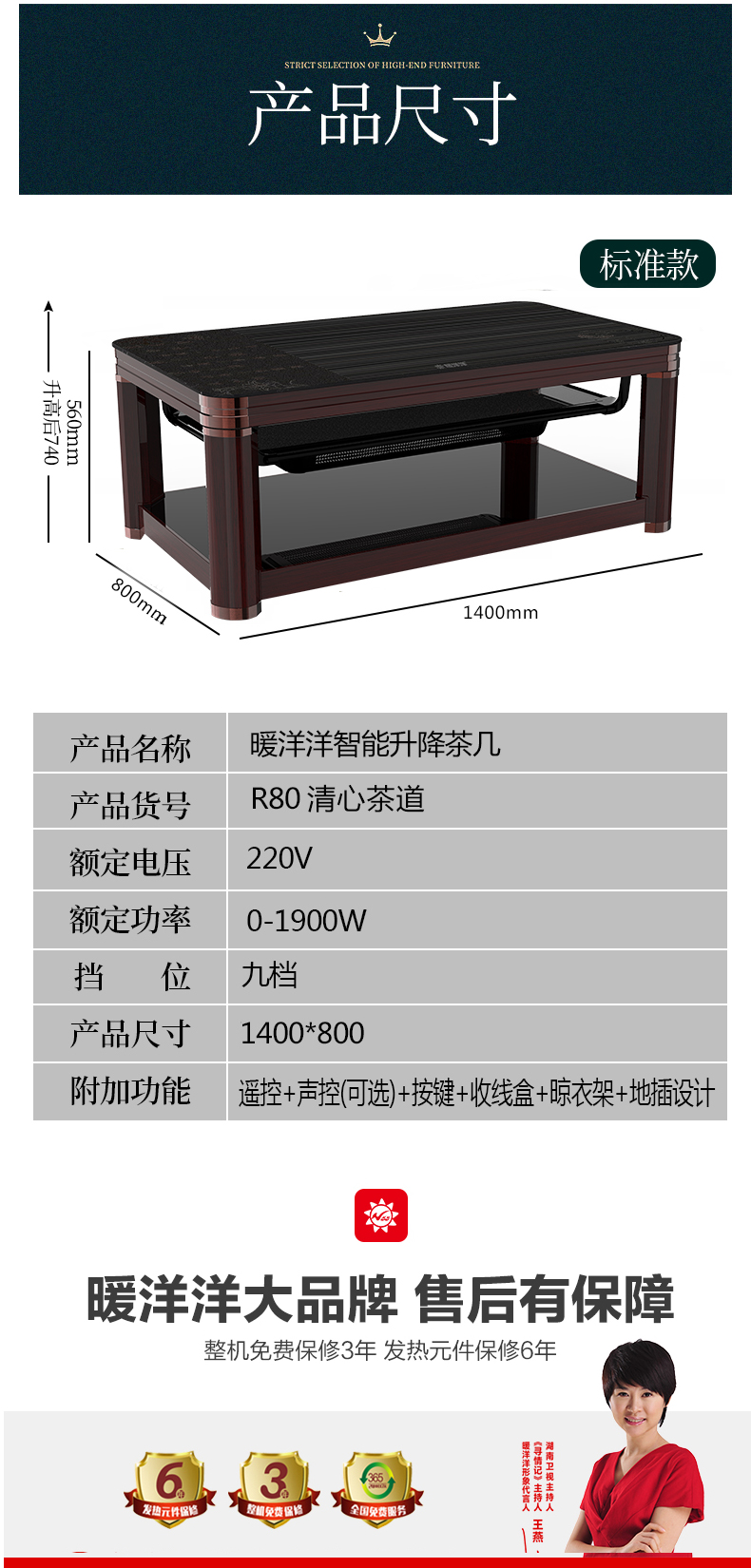 暖洋洋電暖桌·茶幾售后保障:凡購買暖洋洋電暖桌·茶幾,即可整機免費保修3年,發熱器元件保修6年,大品牌有保障,值得信賴!幸福家庭暖洋洋 有家有愛暖洋洋